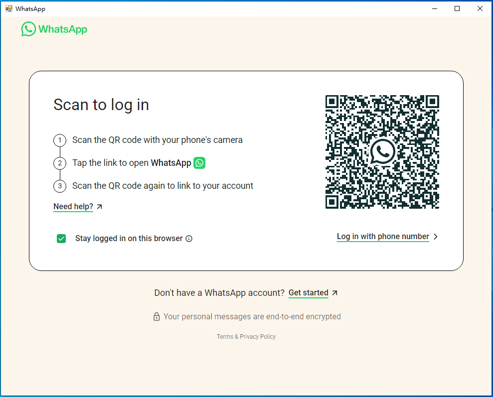 点击主界面WhatsApp号码功能区【+】按钮,登陆WhatsApp账号,软件会自动弹出扫码界面,扫码成功后会显示在主界面WhatsApp号码功能区